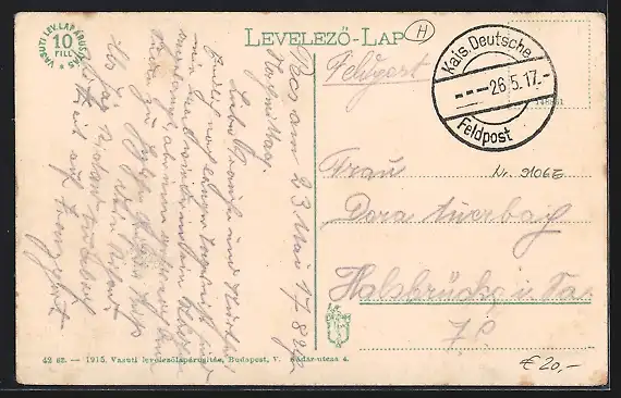 gelaufen 1917, Ecken bestoßen, guter Zustand