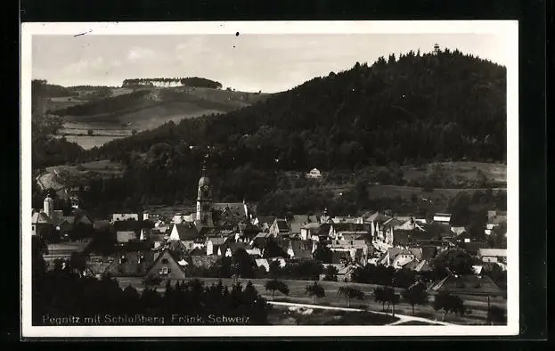 AK Pegnitz /Fränk. Schweiz, Ortsansicht mit Blick auf das Schlossberg