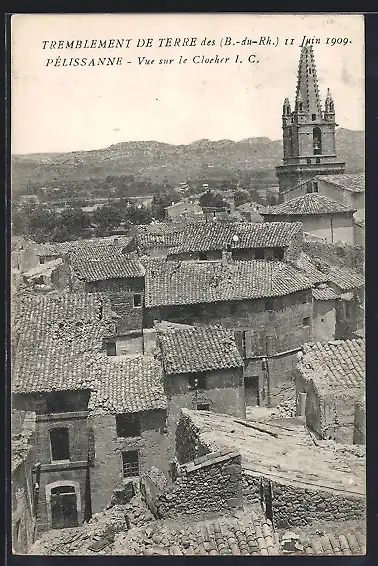AK Pélissanne, Vue sur le CLocher I. C., Tremblement de Terre 1909, Erdbeben