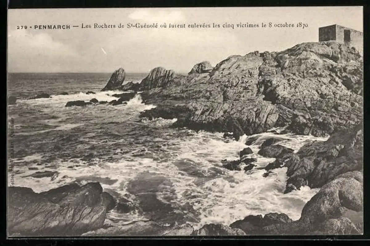 AK Penmarch, Les Rochers de St-Guénolé où lutent enlevées les cinq victimes le 8 octobre 1870