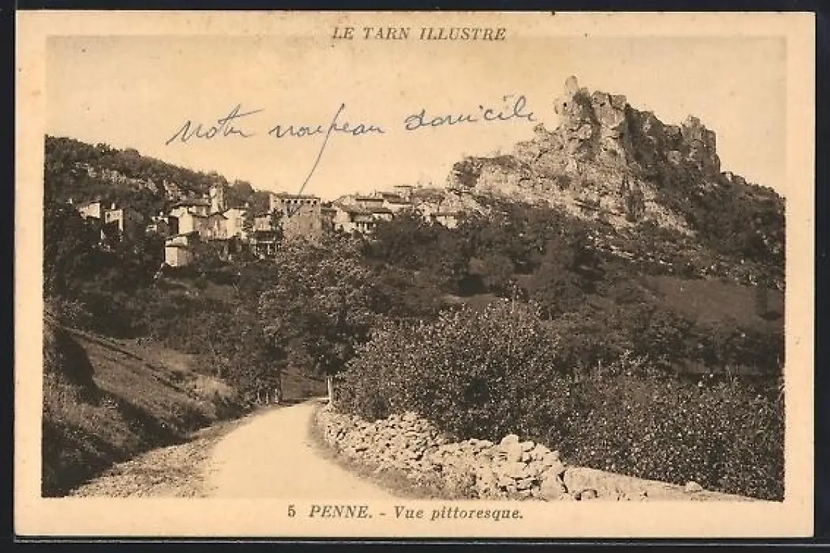 AK Penne /Tarn, Vue pittoresque du village et des formations rocheuses