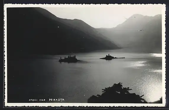 AK Perast, Panoramablick mit den zwei Inseln