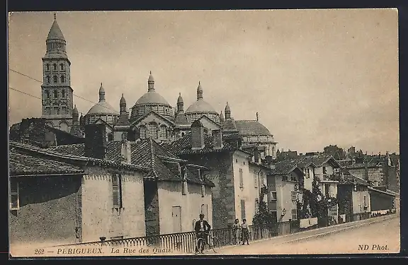 AK Périgueux, La Rue des Quais et vue de la cathédrale