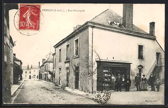 AK Pernay, Rue Principale avec habitants devant un magasin
