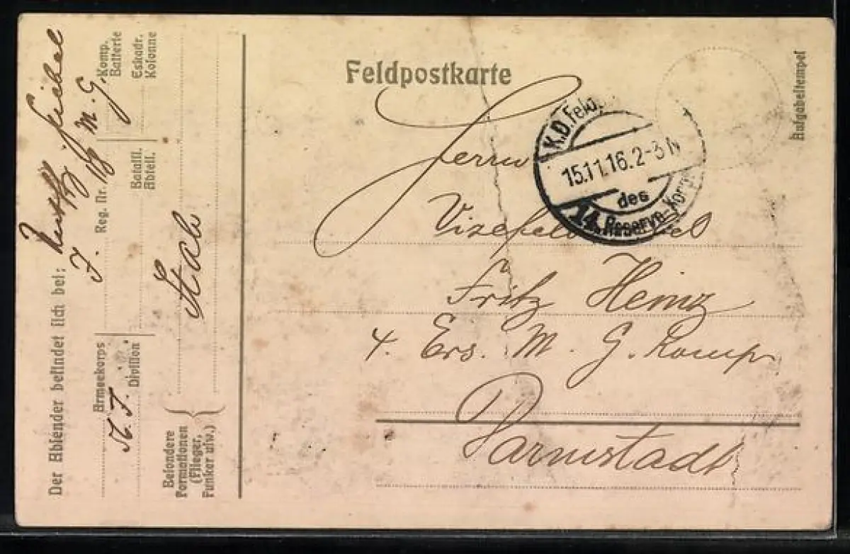 alte Ansichtskarte, gelaufen 1916, Eckknick oben re., Stempelspur, guter Zustand