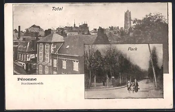 AK Péronne, Totalansicht und Park im Passepartout