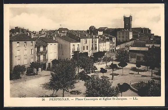 AK Perpignan, Place Cassanyes et Église St-Jacques