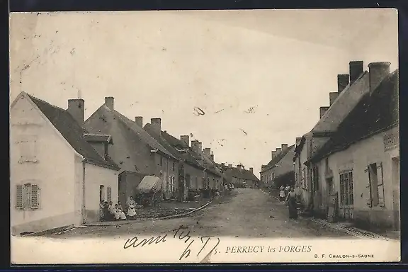 AK Perrecy-les-Forges, Vue de la rue principale avec maisons et habitants