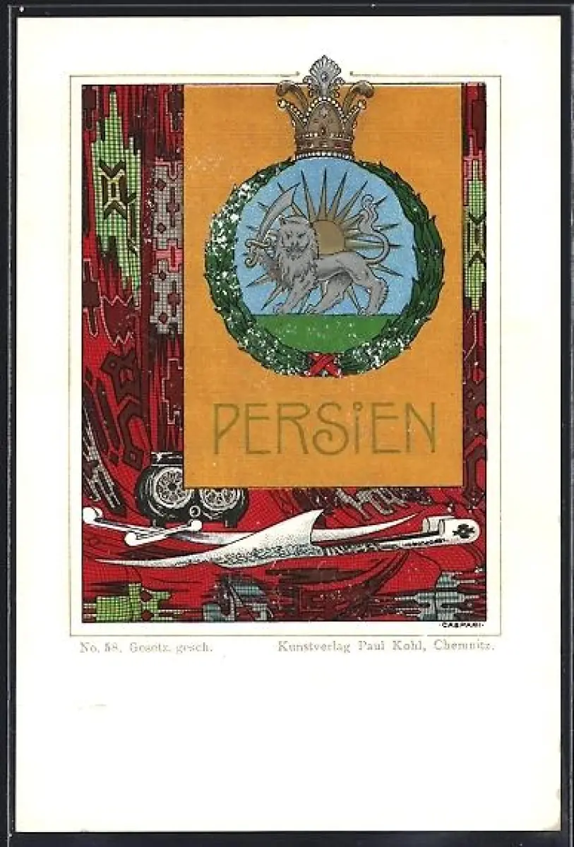AK Persien, Wappen mit Krone, Löwe und Schwert