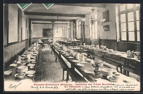 AK Péruwelz-Bonsecours, Institution des Frères Maristes, Un Réfectoire