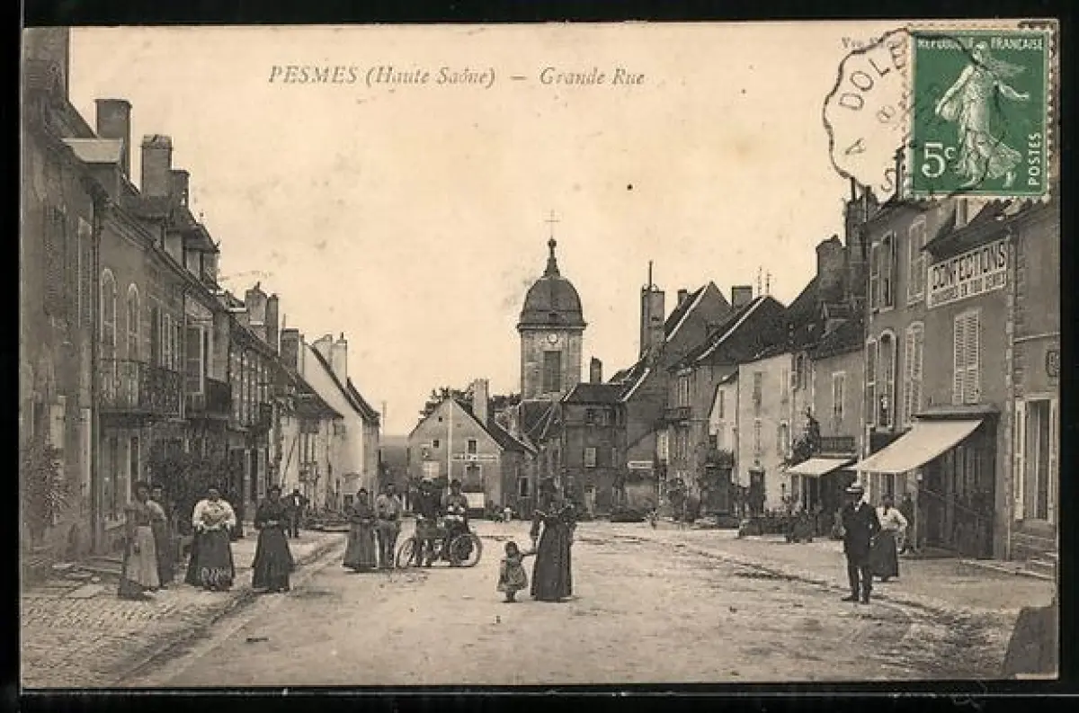 AK Pesmes /Haute Saône, Grande Rue avec habitants et commerces