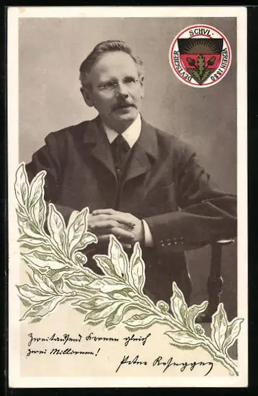 AK Peter Rosegger, Portrait des Dichters, Lorbeerzweig, Deutscher Schulverein