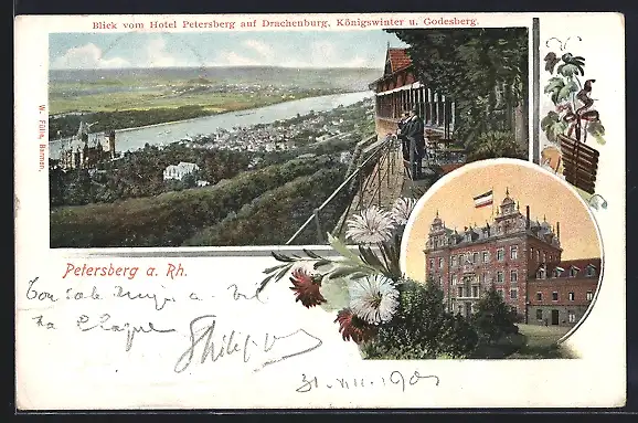 AK Petersberg a. Rh, Blick vom Hotel auf Drachenburg, Königswinter & Godesberg