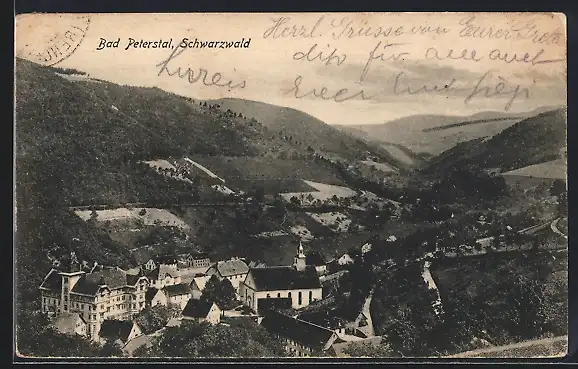 AK Peterstal / Schwarzwald, Blick über den Ort mit Kirche
