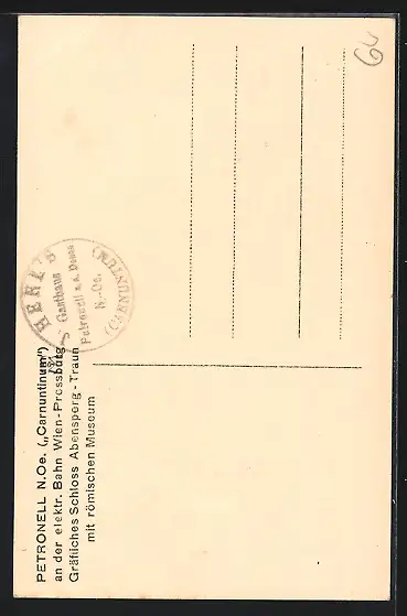 AK Petronell, Das gräfliche Schloss Abensperg-Traun mit röm. Museum