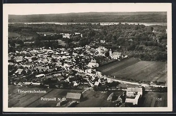 AK Petronell /N.-Ö., Teilansicht mit Strassenpartie, Fliegeraufnahme