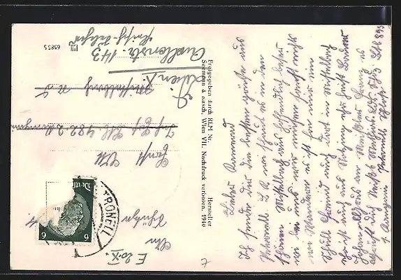alte Ansichtskarte, gelaufen, Briefmarke entfernt, guter Zustand