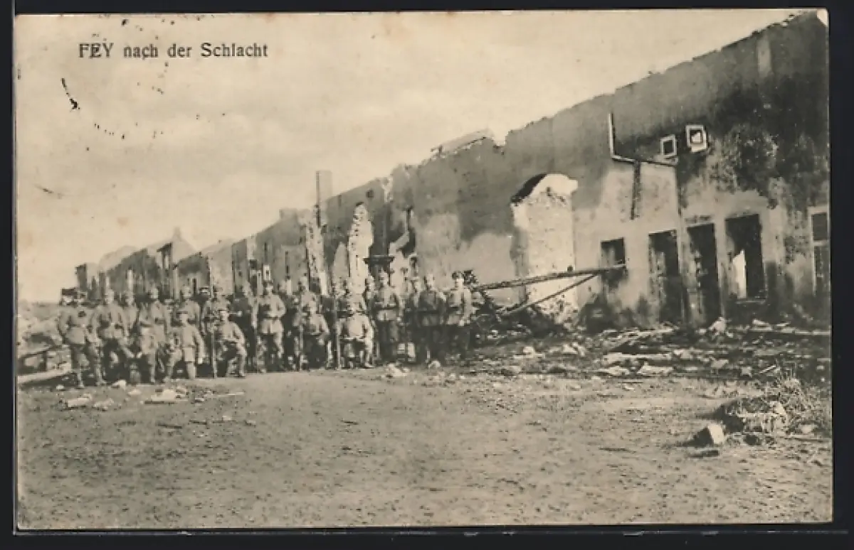AK Pey, Soldaten posieren in der zerstörten Stadt