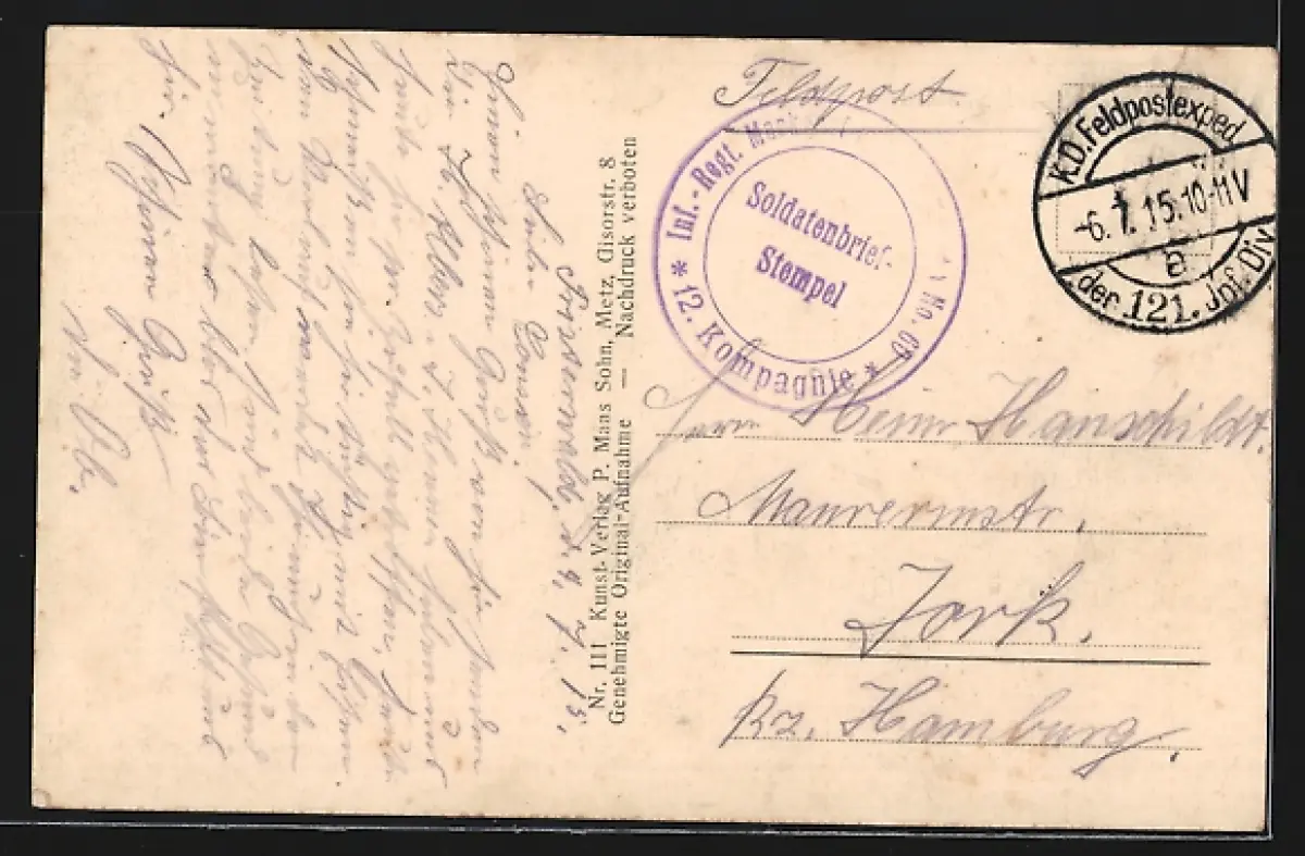 alte Ansichtskarte, gelaufen 1915, Stempelspur, guter Zustand