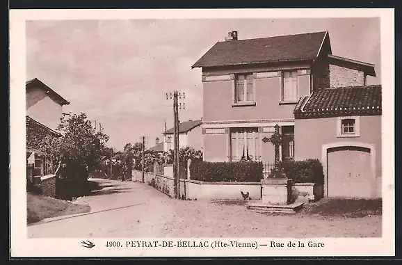 AK Peyrat-de-Bellac, Rue de la Gare, Strassenpartie