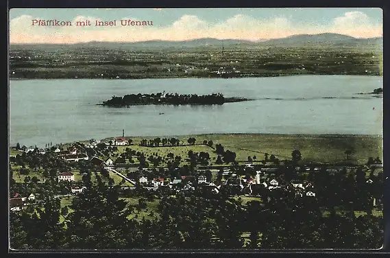 AK Pfäffikon, Ansicht mit Insel Ufenau