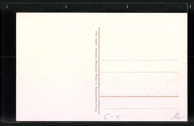 Personenbezogene Daten auf der Rückseite der Karte wurden durch blauen Textmarker unkenntlich gemacht. Die blauen Stellen sind auf die Vorderseite durchgeweicht und wirken sich negativ auf das Postkartenfoto aus