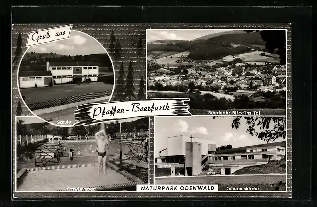 AK Pfaffen-Beerfurth i. O., Schwimmbad, Ortsansicht