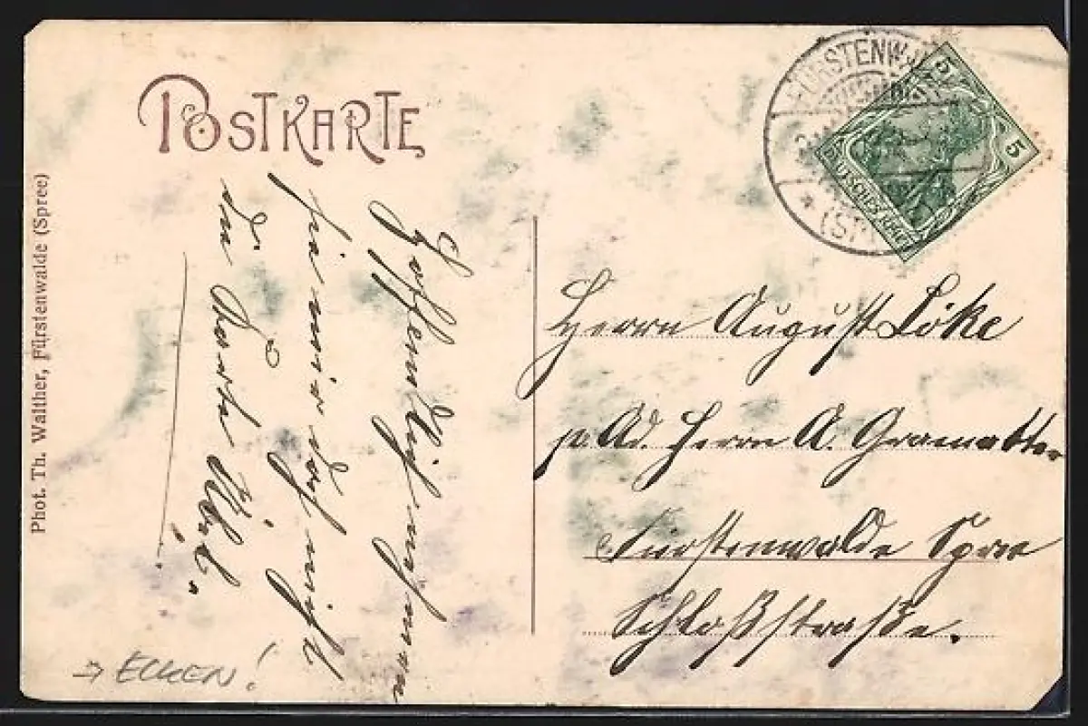 alte Ansichtskarte, gelaufen 1908, Eckschäden re. oben u. li.