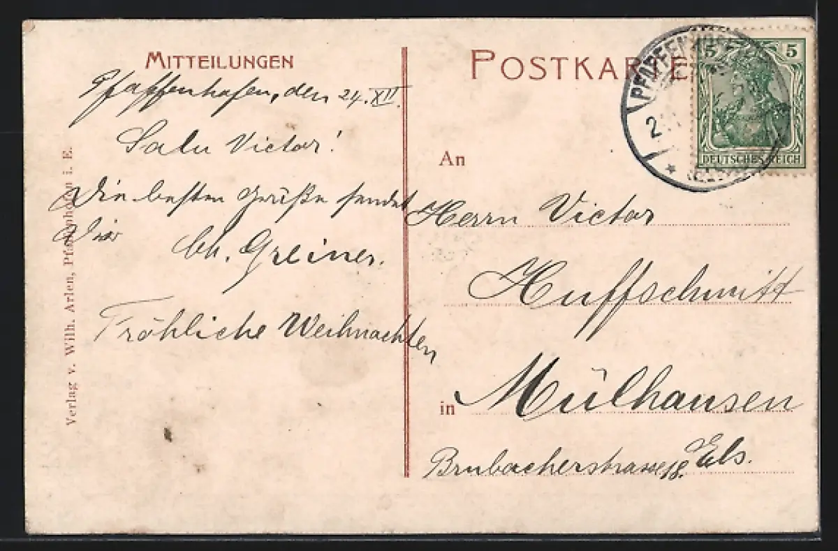 alte Ansichtskarte, gelaufen, Abriebspur unten rechts, guter Zustand