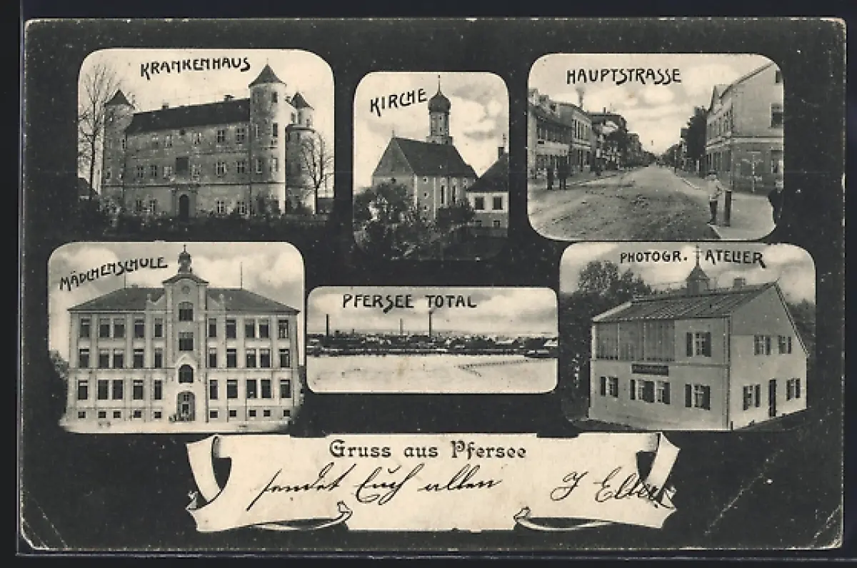AK Pfersee, Krankenhaus, Hauptstrasse, Mädchenschule, Photogr. Atelier