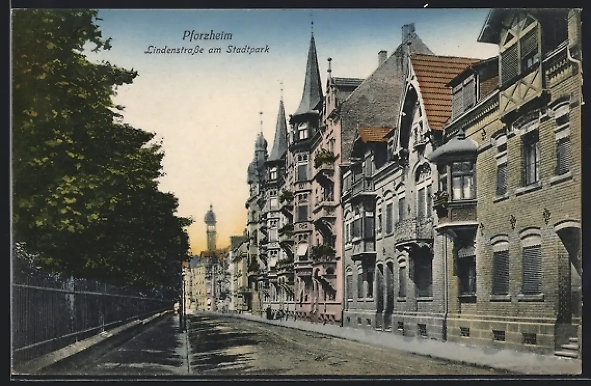 AK Pforzheim, Lindenstrasse am Stadtpark