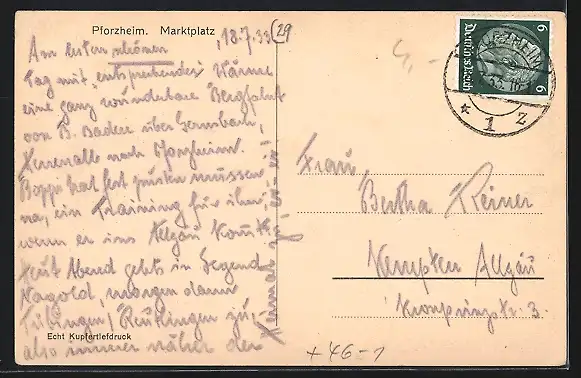gelaufen 1933, Eckknicke re. oben, guter Zustand