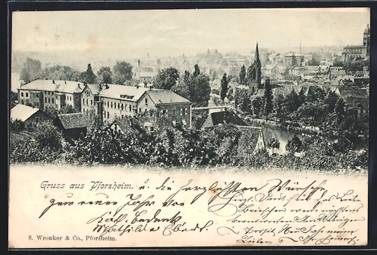 AK Pforzheim, Teilansicht mit Kirche