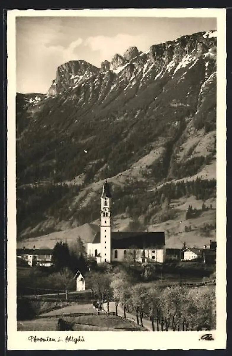 AK Pfronten i. Allgäu, Kirche, Berge mit Aggenstein und Breitenberg