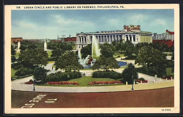 AK Philadelphia, PA, Logan circle and public lobrary on Parkway