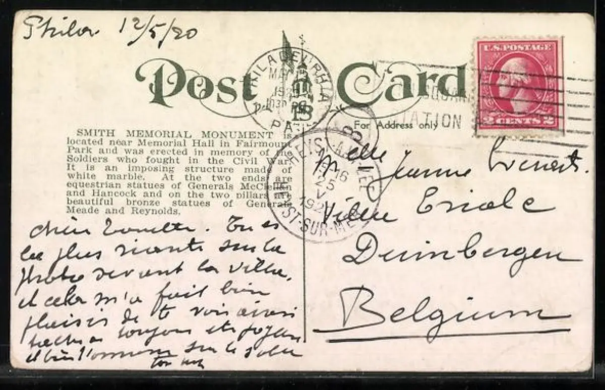 AK Philadelphia, PA, Smith Memorial Monument, Fairmount Park