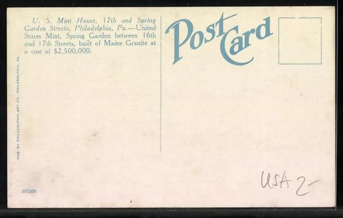 AK Philadelphia, PA, U. S. Mint House, 17th and Spring Garden Streets