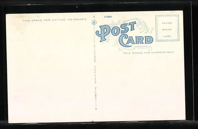 Personenbezogene Daten auf der Rückseite der Karte wurden durch blauen Textmarker unkenntlich gemacht. Die blauen Stellen sind auf die Vorderseite durchgeweicht und wirken sich negativ auf das Postkartenfoto aus