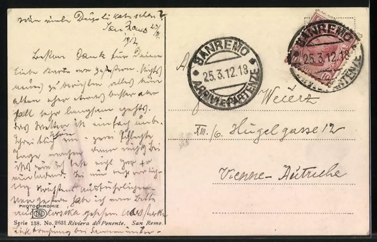 AK Photochromie NR. 2631: San Remo, Riviera di Ponente