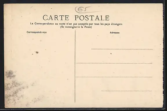 Personenbezogene Daten auf der Rückseite der Karte wurden durch blauen Textmarker unkenntlich gemacht. Die blauen Stellen sind auf die Vorderseite durchgeweicht und wirken sich negativ auf das Postkartenfoto aus