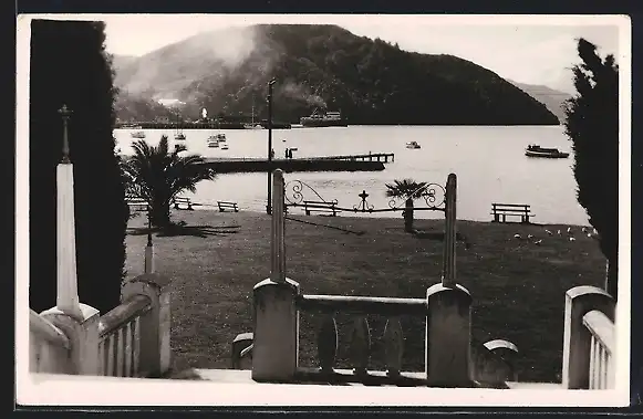 AK Picton, Blick über das Wasser auf einen fahrenden Dampfer