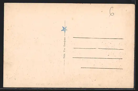 Personenbezogene Daten auf der Rückseite der Karte wurden durch blauen Textmarker unkenntlich gemacht. Die blauen Stellen sind auf die Vorderseite durchgeweicht und wirken sich negativ auf das Postkartenfoto aus