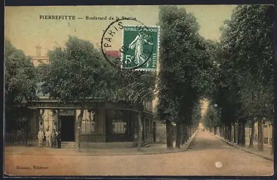 AK Pierrefitte, Boulevard de la Station avec café et arbres alignés