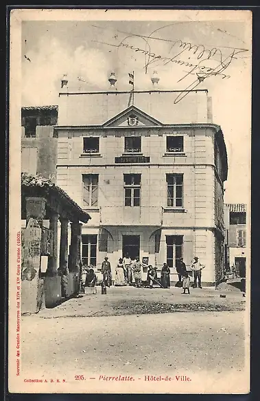 AK Pierrelatte, Hôtel-de-Ville et habitants devant le bâtiment