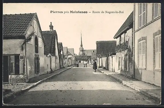 AK Pierres, Route de Nogent-le-Roi avec vue sur le clocher en arrière-plan
