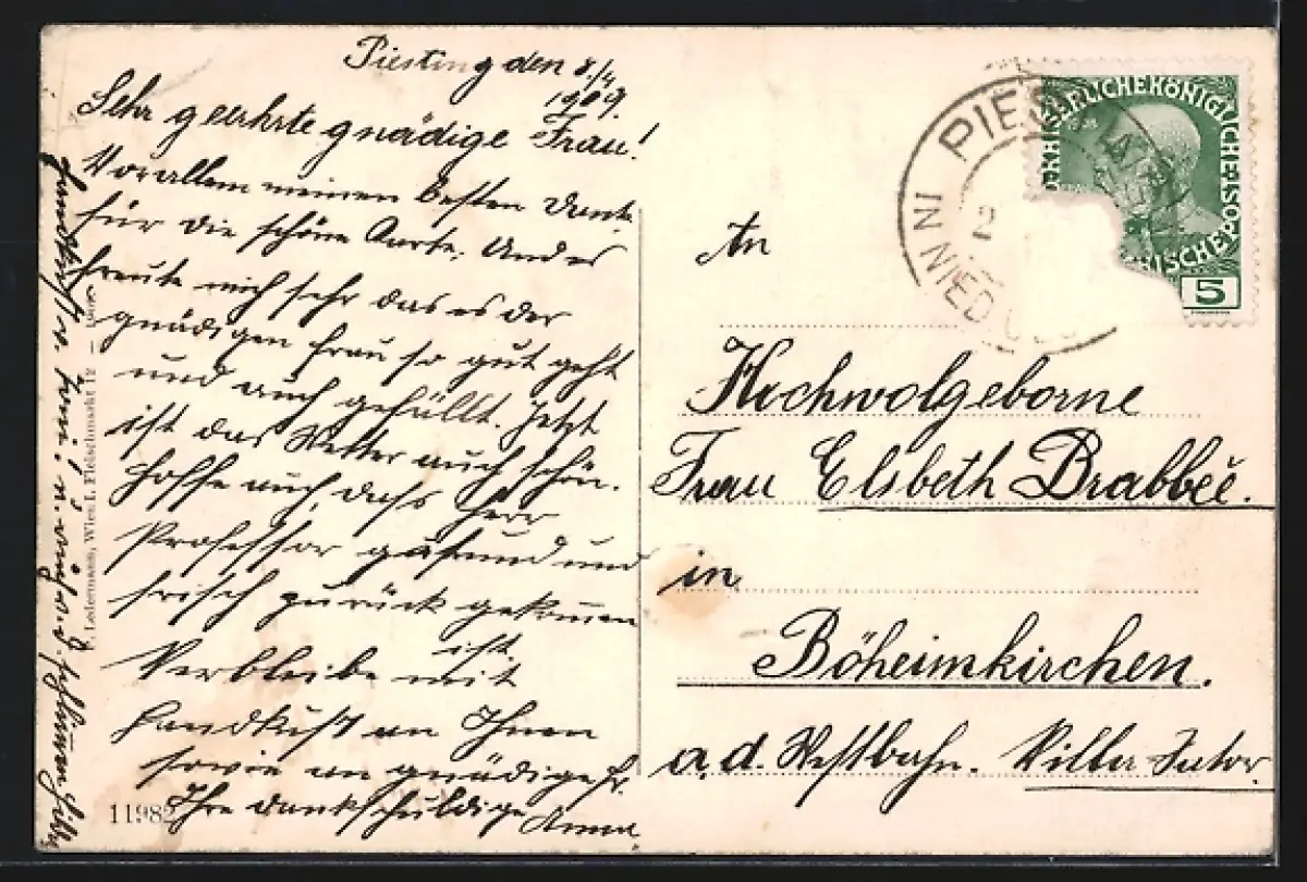 gelaufen 1909, Briefmarke entfernt, guter Zustand