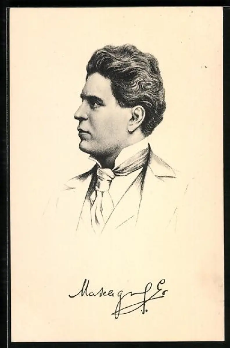 AK Pietro Mascagni, Seitenportrait mit Krawatte