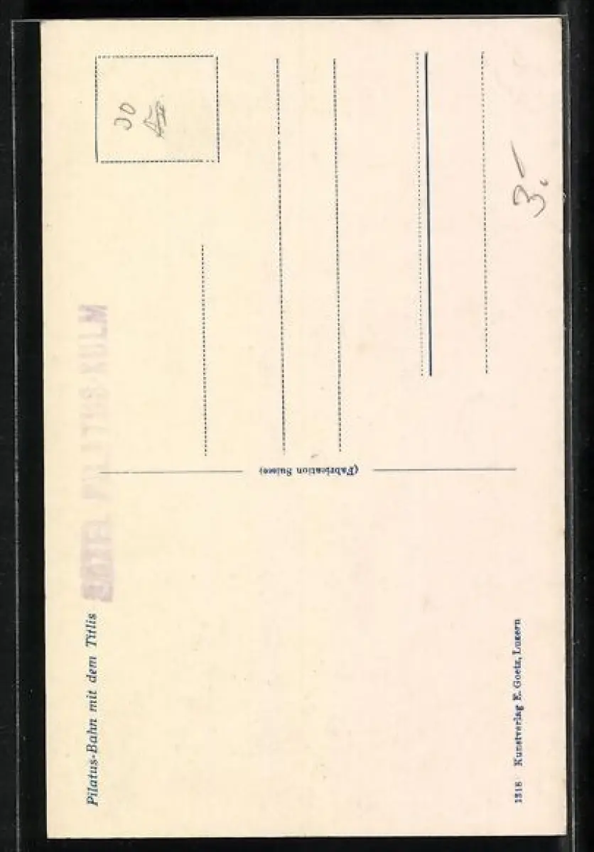 Personenbezogene Daten auf der Rückseite der Karte wurden durch blauen Textmarker unkenntlich gemacht. Die blauen Stellen sind auf die Vorderseite durchgeweicht und wirken sich negativ auf das Postkartenfoto aus