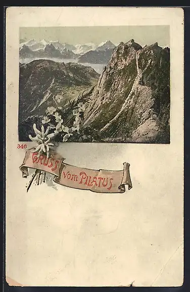 AK Pilatus, Bergpanorama im Edelweiss-Passepartout