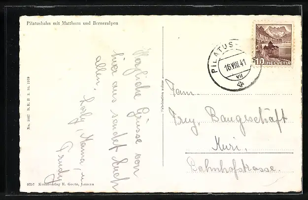AK Pilatusbahn, Panorama mit Matthorn und Berneralpen